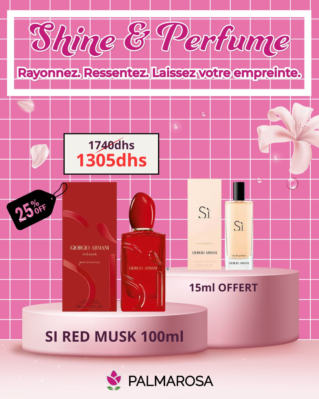 - GIORGIO ARMANI - SI PASSIONE RED MUSK EDP 100 MLPrix spécial 1 190,00 MAD Prix normal 1 700,00 MAD -30%